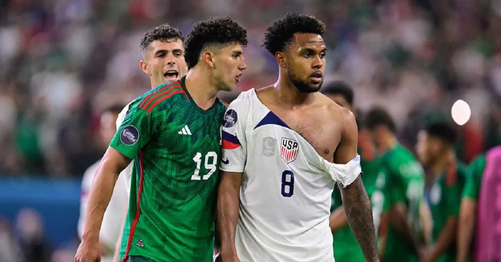 Tras ir abajo en el marcador 2-0, a 20 minutos del final en una acción meramente antideportiva, el defensor mexicano César Montes pateó deliberadamente a Folarin Balogun, acción que de inmediato encendió los ánimos de los elementos estadounidenses, en específico de Weston McKennie, quien en el intento por defender y abogar por su compatriota, terminó con la playera totalmente destrozada.