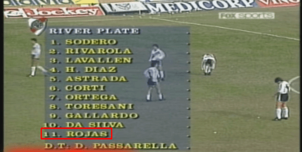 El futbolista militó en las reservas del equipo, haciendo su debut en 1993 de la mano del entonces entrenador, Daniel Passarella. Rojas pertenecía a la misma promoción de Ariel el “Burrito” Ortega, y hoy técnico de River, Marcelo el “Muñeco” Gallardo.