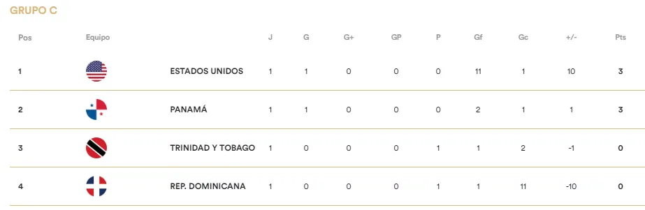 Tabla de posiciones de la Eliminatoria de Concacaf al Mundial de Fútbol Playa