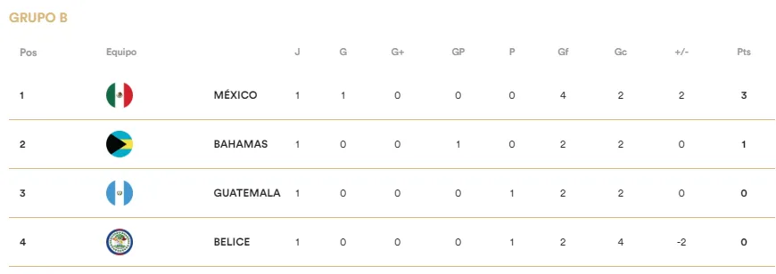La selección de México cumplió lo esperado y venció a su similar de Belize con marcador de 4 por 2, un marcador algo discreto para una de las selecciones llamadas a dejarse el título del certamen. Los 4 veces campeones del torneo se dejan los puntos pero con muchas dudas en el camino.