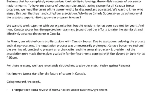 La Federación de Futbol de Canadá sorprendió al dar a conocer que de último momento se iba a cancelar el partido amistoso ante Panamá, que se iba a disputar la tarde de hoy, supuestamente por una protesta que había iniciado losjugadores norteamericanos por diferencias con los dirigentes y es por eso que se decidió no jugar.