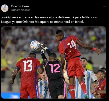 “José Guerra entraría en la convocatoria de Panamá para la Nations League, ya que Orlando Mosquera se mantendrá en Israel”, informó el periodista, Ricardo Icaza, a través de sus redes sociales.