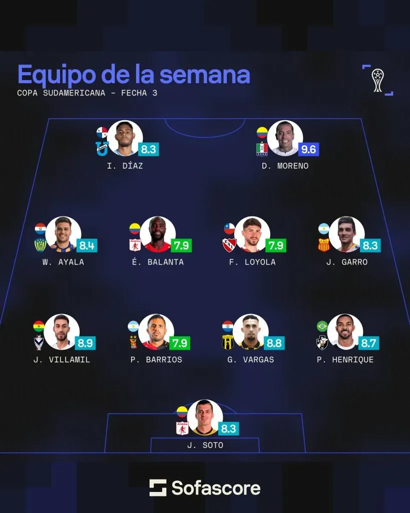 Lo hecho en las últimas 24 horas, en condición de local, le permitió ganarse un lugar en el equipo de la semana de la Copa Sudamericana. De acuerdo a las estadísticas del sitio Sofascore, Ismael Díaz calificó 8.3 en el duelo contra Defensa en el que marcó dos goles. Por eso, está dentro del once ideal de la tercera jornada.