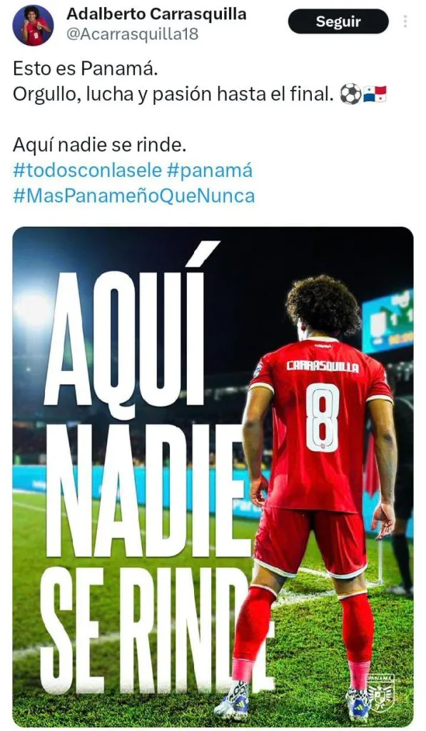 A través de sus redes sociales, Carrasquilla compartió un posteo con una foto suya y cuatro palabras a modo de advertencia para El Salvador y Guatemala, rival al cual se volverá a cruzar en la fecha FIFA de noviembre: “Aquí nadie se rinde”.