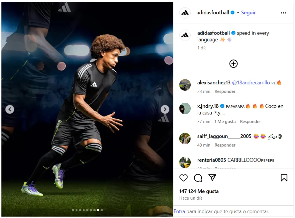 Mientras tanto, como si todo lo anterior fuese poco, Adidas lo eligió para darle la debida presentación a su nueva línea de calzado junto a otros cracks. Carrasquilla aparece en imágenes junto a hombres del calibre de Luis Díaz o Julián Álvarez.