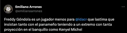 Además, añadió que, Góndola sigue viendo minutos, debido a que Carevic no tiene otros jugadores para la posición. Aunque pronto tendrá a disposición a otros elementos y el extremo será poco tomado en cuenta.