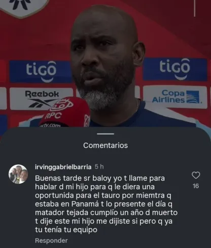 El que no tardó en reaccionar tras las polémicas palabras de Felipe Baloy fue Irving Gabriel Barría, papá del joven futbolista de Botafogo. En el que incluso aseguró que le llamó al exjugador y ahora entrenador de la Sub-20 de Panamá para que le diera una oportunidad, algo que no se le concedió.