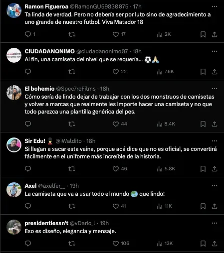 Asimismo, el periodista, Pablo Giralt, opinó: “Esta sería la nueva camiseta de Panamá en homenaje al mítico goleador Luis Tejada, fallecido el pasado 28 de enero. Una completa locura, a la altura de su leyenda”, a lo que Andrés Agulla, también comunicador, contestó: “La necesito”.