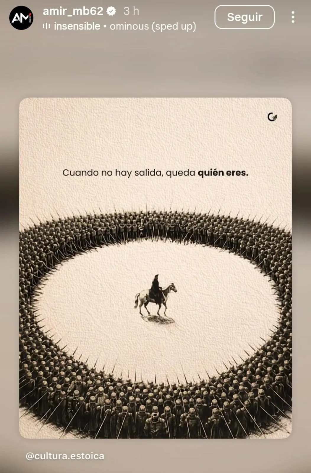 “Cuando no hay salida, queda quién eres“, reza la historia que publicó el ex Anderlecht. El panameño se siente sin escapatoria en el Olympique de Marsella debido a la imagen que acompaña dicha frase. Un jinete solitario frente a miles que lo quieren atacar.