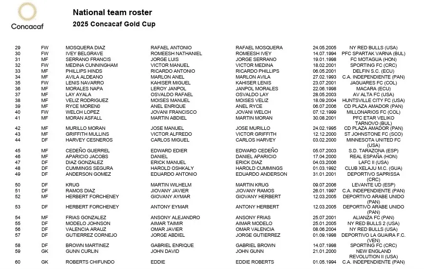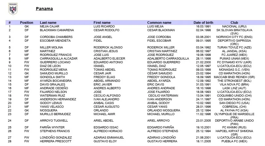En total, son sesenta futbolistas los que aparecen en la nómina preliminar de Panamá. Y si bien todavía falta el corte final del cuerpo técnico, uno de los nombres más llamativos del listado es el del lateral izquierdo Erick Davis, quien está recuperándose de una lesión en su rodilla.