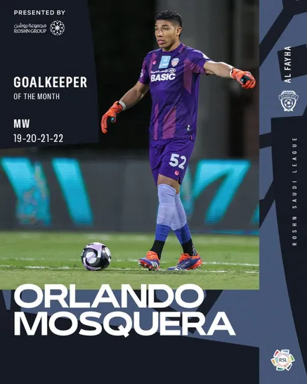 Orlando Mosquera fue galardonado como el Mejor Portero de Febrero, esto gracias a mantener el marco en cero en los juegos contra Al Raed, Al Khaleej Club y Al Riyadh, resultados que fueron importantes para mantener al equipo lejos del sótano.