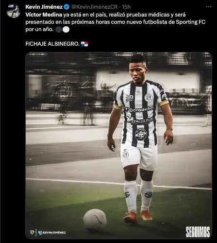 Ahora, el extremo volvería a salir al extranjero, después de ese pasaje fugaz que tuvo en Deportivo Saprissa: “Víctor Medina ya está en el país, realizó pruebas médicas y será presentado en las próximas horas como nuevo futbolista de Sporting FC por un año”, expresó el periodista, Kevin Jiménez.