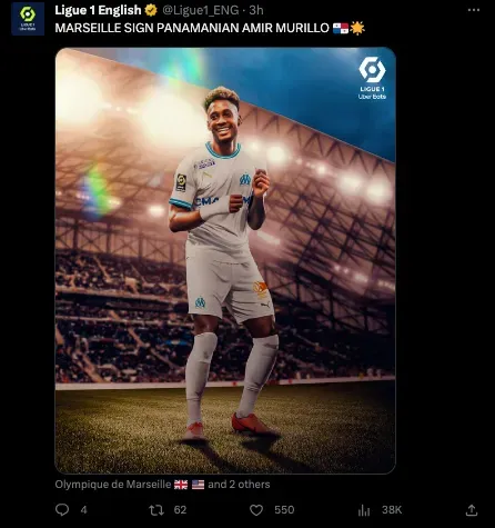Por su parte, otro de los que le dio la bienvenida al lateral panameño, fue la propia Ligue 1 a través de sus redes sociales, con el mensaje: “Marsella contrata al panameño Amir Murillo”. Al igual, la cuenta oficial en español, publicó una foto del jugador, acompañado de un “Uff”.