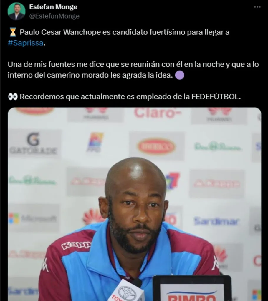 Además, Monge informó que la dirigencia del Saprissa tiene programada una reunión con Wanchope la noche de este lunes, lo que refuerza la posibilidad de que sea él quien termine ocupando el banquillo morado.