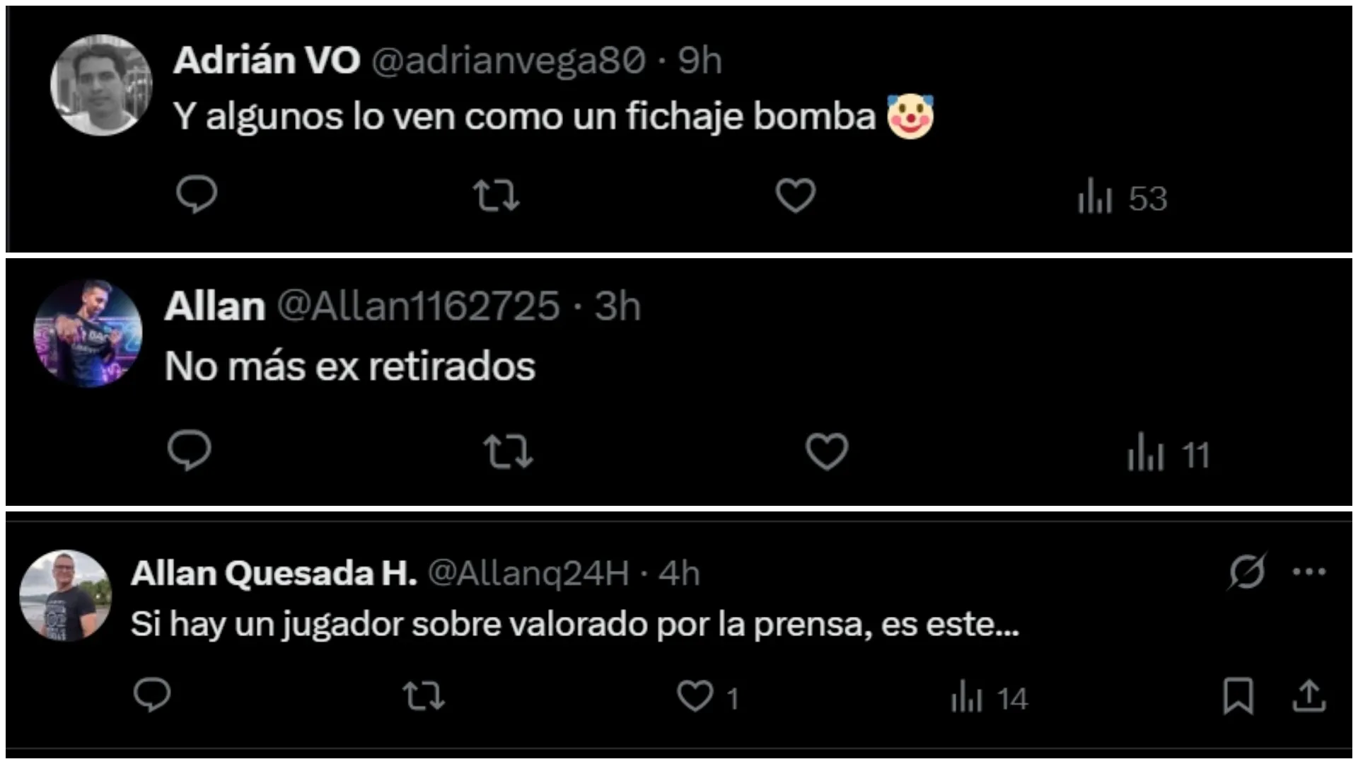 “No debe venir a Saprissa”, “Y algunos lo ven como un fichaje bomba”, fueron algunas de las reacciones más repetidas en redes sociales.