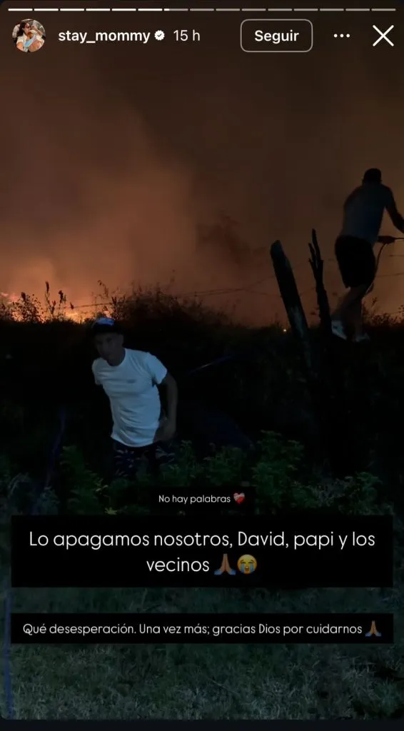 “Estamos en shock gracias a Dios tenemos unas mangueras con las que regamos el jardín y con eso logramos alejarlo un poco, no lo apagamos, pero si lo alejamos, fue un susto que no se lo deseamos a nadie, estaban mi papá, mi mamá, los chiquitos, estábamos preparándonos para cenar y tuvimos que dejar todo botado para salir a apagar el fuego”, sentenció Montero, la mujer de David Guzmán.