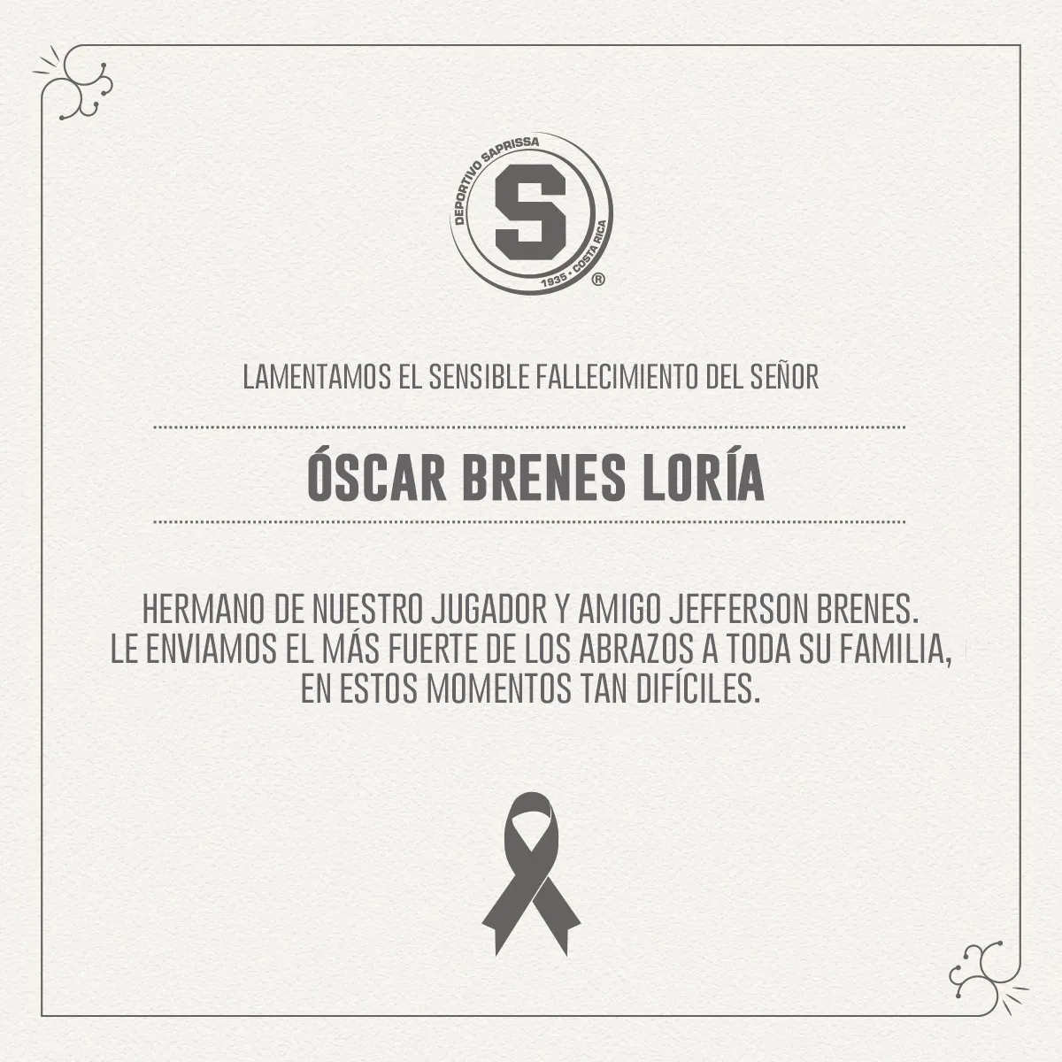 Saprissa, por su parte, le envió las respectivas condolencias al jugador y a toda su familia en este complicado presente: “Le enviamos el más fuerte de los abrazos a toda su familia en estos momentos tan difíciles”.