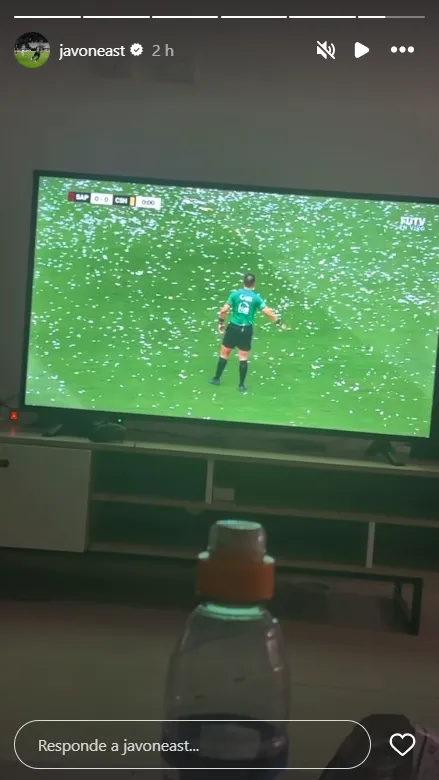 Javon East, actual jugador del Hapoel Haifa de la Liga Premier de Israel, publicó una historia en su cuenta de Instagram en la que estaba viendo el partido entre Saprissa y Herediano.