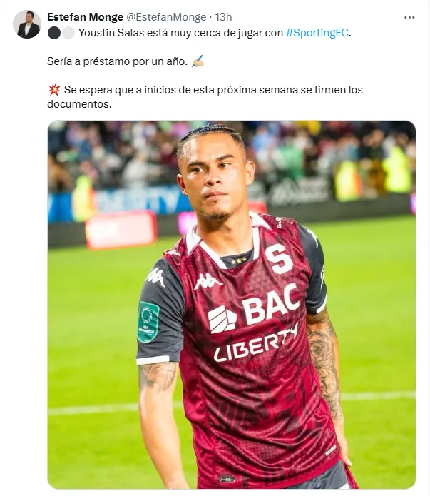 De acuerdo a lo publicado por Estefan Monge y Kevin Jiménez, dos de los periodistas mejor informados acerca del mercado de fichajes, Youstin Salas dejaría Saprissa para sumarse a Sporting FC y reforzar así a un rival de los morados.
