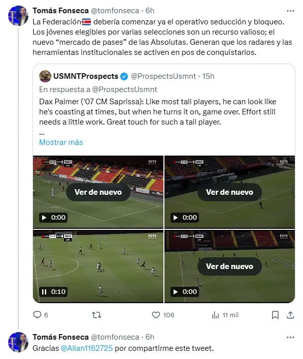 Este posteo no pasó inadvertido en Costa Rica y fue el periodista argentino de Tigo Sports, Tomás Fonseca, quien le puso el ojo a la cuestión. “La Federación de Costa Rica Debería comenzar ya el operativo seducción y bloqueo”, aseguró el especialista.