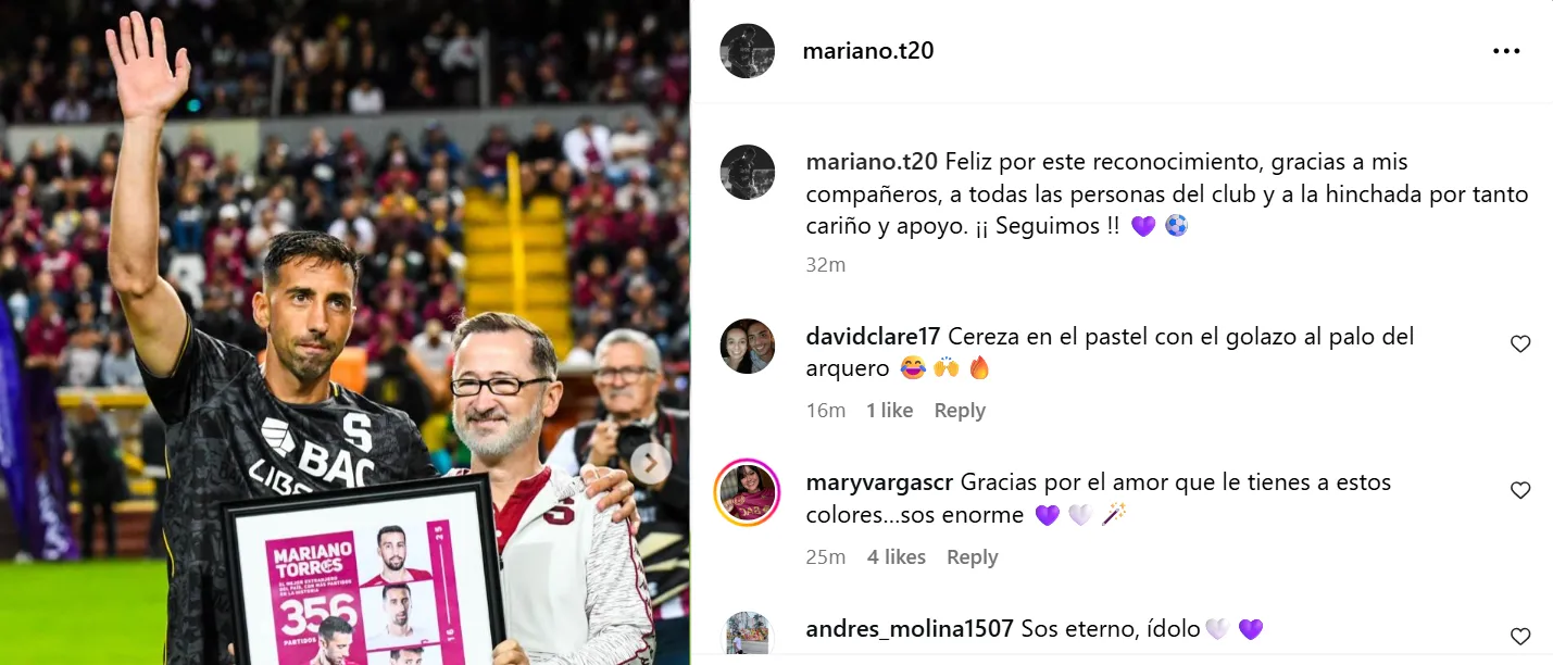 El capitán del Deportivo Saprissa, Mariano Torres, escribió este sábado una nueva página dorada en la historia del fútbol de Costa Rica. A los 38 años, el mediocampista argentino vivió una noche a pura emoción al convertirse en el futbolista extranjero con más partidos disputados en el balompié tico.